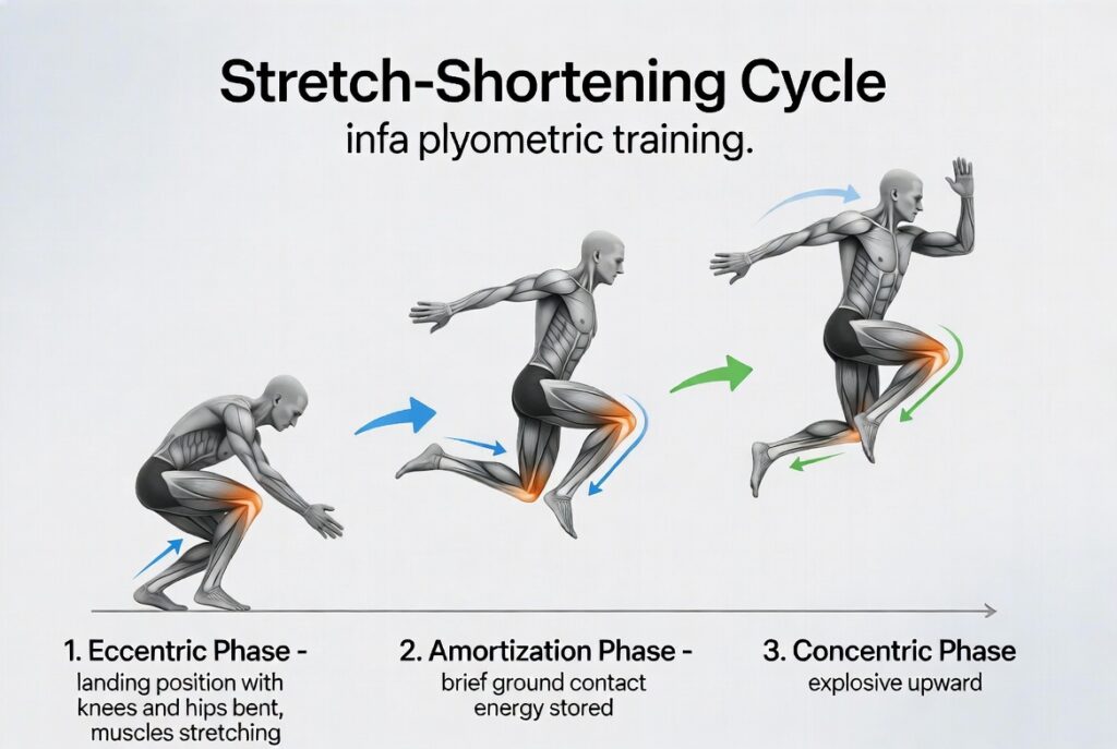 | Scientific Basis | Stretch-Shortening Cycle (Eccentric → Amortization → Concentric) |